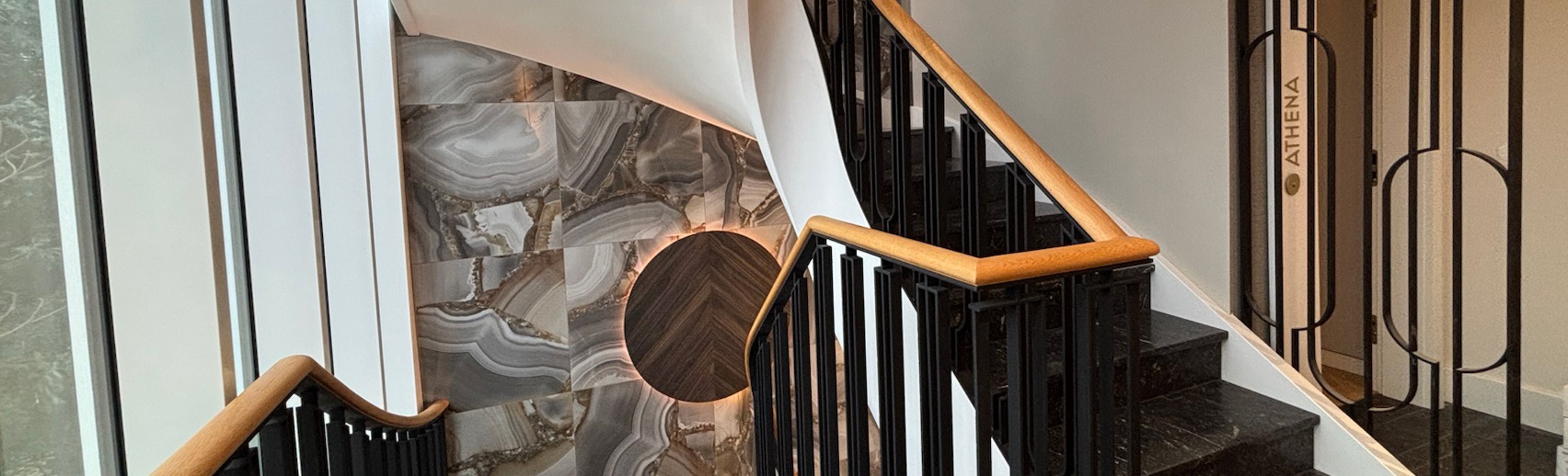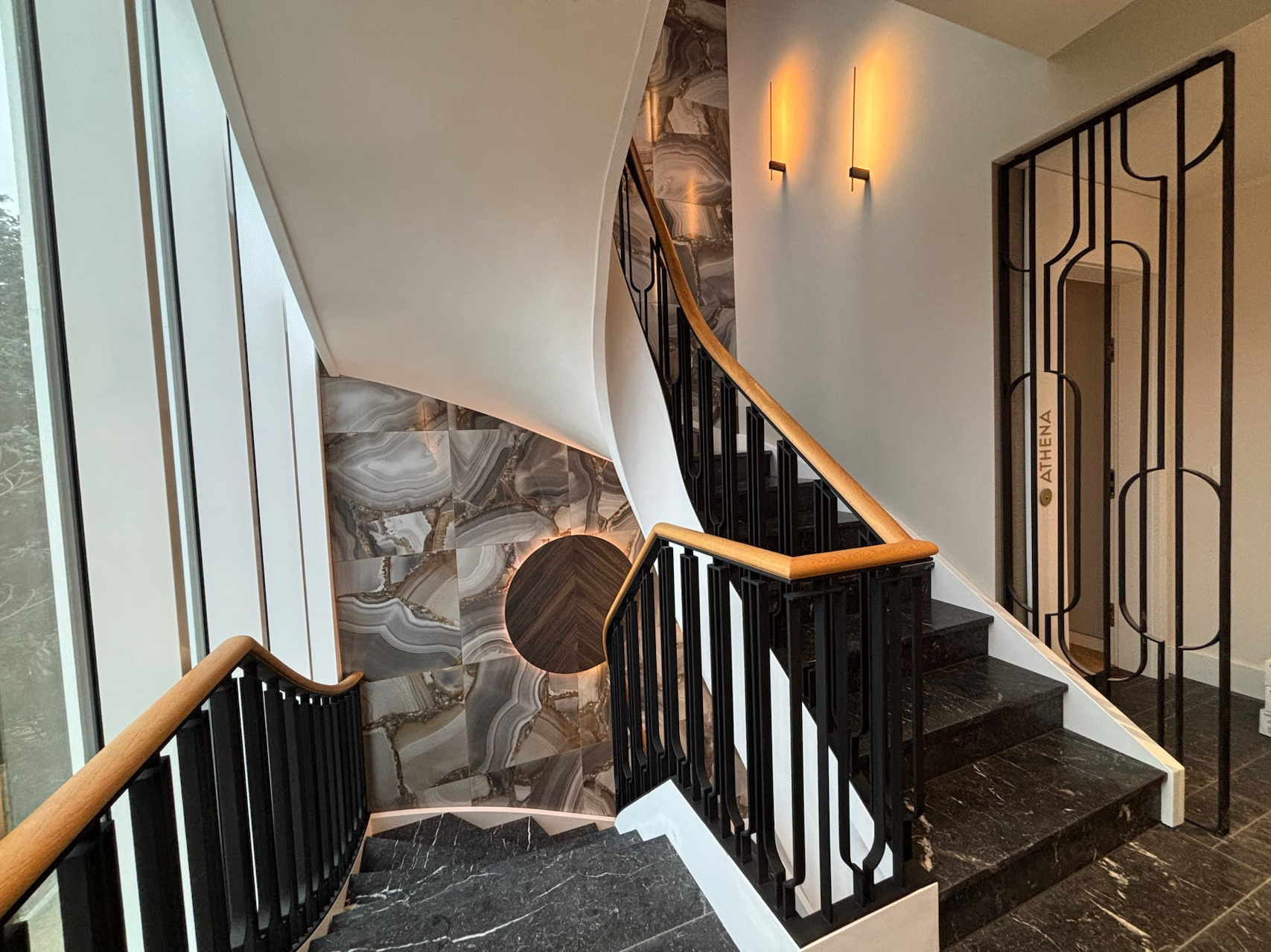 Keramikböden, Parkett, Tapeten und eine Glasfassade, durch die Tageslicht flutet – wer Arielle Suites betritt, den umfangen Harmonie und Schönheit. Neben den Eingängen der sechs Ferienwohnungen ist jeweils ein Name eingelassen, auf diese Weise finden Gäste schnell die richtige Tür öffnen. In angenehmer Lichtstimmung wird schon nach wenigen Schritten deutlich, dass in dieser Unterkunft kein Detail dem Zufall überlassen bleibt: Farben und Materialien sind aufeinander abgestimmt.