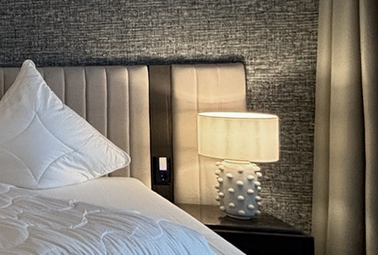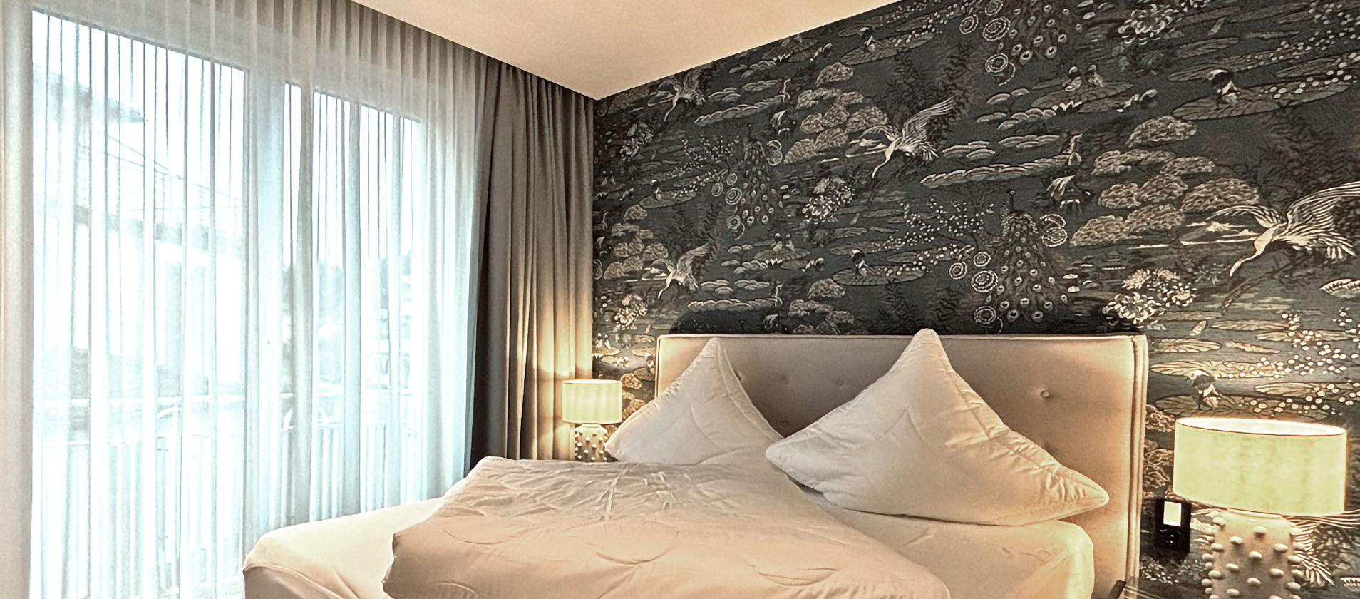 Schlafzimmer mit hochwertigen Boxspring-Doppelbetten (160x210 u. 180x210), Wendematratzen mit unterschiedlichen Härtegraden (H2 + H3)